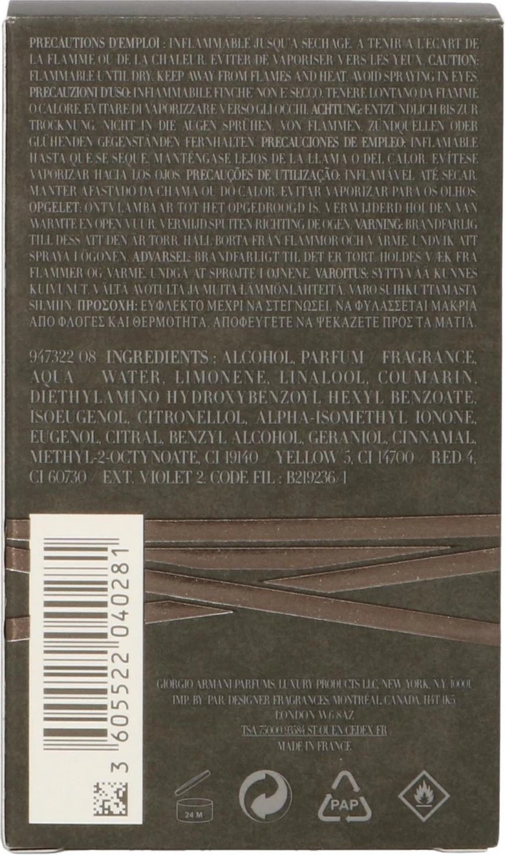 - Topnoten van de geur zijn kardemom, roze peper, viooltjesblad en munt.