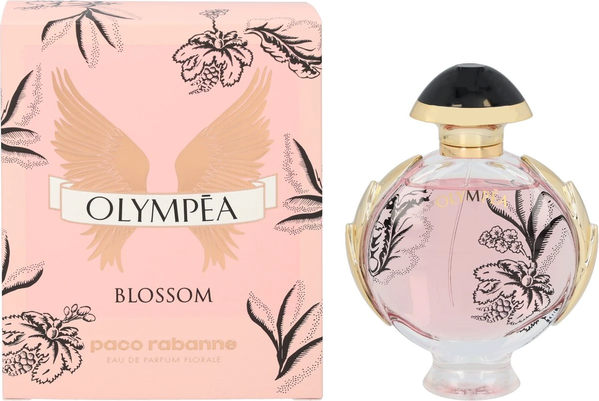 Olympéa Blossom onderscheidt zich met een verfrissend, lichtroze flacon waarover een boeket van zwarte bloemen, geïnspireerd op de styling van Paco Rabanne, bloeit. De goddelijke vrouwelijkheid komt tot uiting in elk detail.