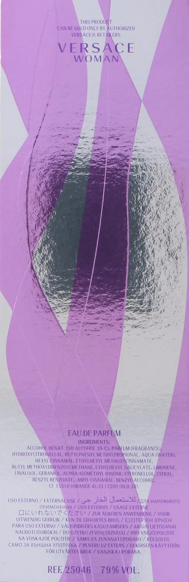 Versace Woman is de perfecte combinatie van exclusieve elegance en volmaakte vrouwelijkheid. Extravagant, geraffineerd en verleidelijk is de vrouw waarvoor deze geur is geschapen. De intensieve, betoverende geur van de paparadja-lotus komt samen met de fruitige geur van pruimen en frambozen, en de kruidige geur van musk en inokohout.